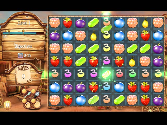 Help Molly recreate her grandfather’s perfect pie! Explore vast levels, collect resources and meet people who will help you through this Sweet Wild West match-3 adventure. Your mission is to complete all the levels, perform the tasks you receive and gather the ingredients to make the epic berry pie. Score points along the way and convert them to useful items from the Shop to make your adventure easier. - Sweet Wild West
