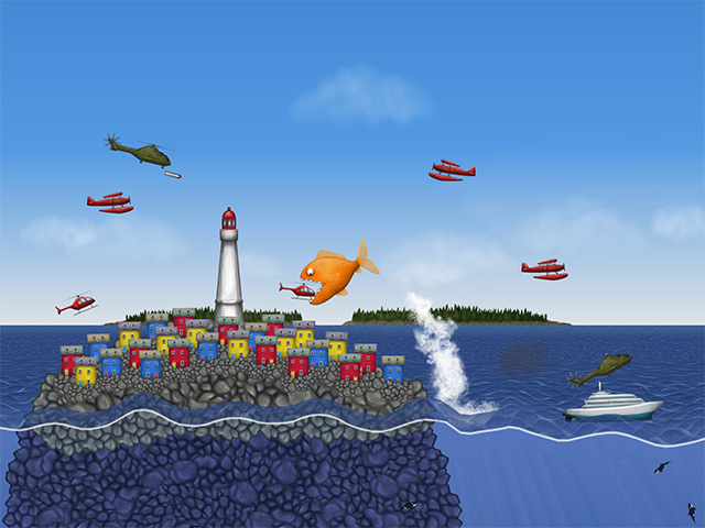Play as a small goldfish with an insatiable appetite. After being overfed by your owner, you'll escape into the ocean and begin to eat everything that you encounter. The more you eat, the bigger you get! Eat shrimp, turtles, sharks, submarines, houses, airplanes, and more! In addition to the goldfish, you can also play as a dolphin and a shark. The dolphin starts off as an overworked aquarium star, forced to jump through flaming hoops for food. He escapes from captivity by eating his way through the aquarium and taking revenge on his trainer. The shark is the final playable character, an artificial fish created by scientists to save Earth's oceans. It uses self-replicating nano-technology to consume everything in its path and convert their matter into its own. There's no telling how big this shark will get. Get Tasty Blue and eat everything in the ocean! - Tasty Blue