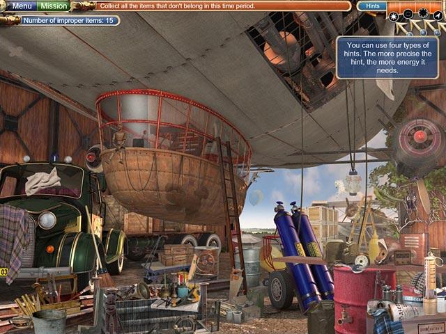 Grandpa is your modern day "Back to the Future" inventor with his top-secret time machine. His mischevious grandson Tim and his friends have decided to test Grandpa Albert`s invention. Travel back in time and help the family collect their missing kids using a Gadget Assembly Screen. Pinpoint out-of-place objects (like a gamepad and joystick) in each historical location such as the Beaches of Troy in 1275 BC. The Clumsys may not be coordinated, but they're determined to have family bonding time in this Hidden Object voyage. - The Clumsys