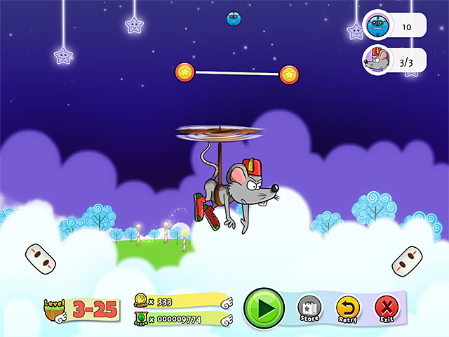 The mischievous Klepto Rats have stolen The Rainbow Machine following the orders of their wicked leader, the perverse and merciless Big Boss! Now they plan to sell the machine, and have hidden its pieces and materials in treasure chests distributed throughout several islands! Now you must help the brave Tobi in his puzzle-packed mission to recover The Rainbow Machine! 140 colorful puzzles lie ahead as you discover colorful fun-filled islands and use the special Blue Sphere to open the hidden treasure chests. Adjust the Rebounder bars to change the trajectory of the Blue Sphere, and direct it towards the treasure chests to collect coins and trophies, and even recover the stolen parts of The Rainbow Machine! But beware… These Klepto Rats are no easy foes, and they are waiting for you at the end of each island! Utterly defeat them and recover The Rainbow Machine! Good luck! - The Rainbow Machine