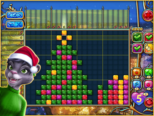 Join the Walker family during their Santa’s sleigh ride around the globe. Play and learn curious facts while answering tricky quiz questions and collecting gold coins and souvenirs. The game includes 140 “nonogram” puzzles (also known as Picross or Griddlers). However, compared to the classic nonograms, the “Travel Mosaics” puzzles are color-coded. “Travel Mosaics 11: Christmas Sleigh Ride” is an amazing brain-jogging adventure for anyone ready to bring on the spirit of Christmas and learn something new about Christmas traditions worldwide! - Travel Mosaics 11: Christmas Sleigh Ride