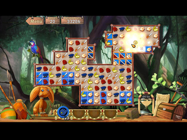 Help the crew of a shipwrecked transatlantic ocean liner. They're lost on a mysterious island chain, and only you can find their way home in this hidden-object, adventure, building, and matching game. Build your camp, explore the islands, collect resources, meet natives, and contend with local wildlife. Explore an active volcano, and use science, and island magic to find a way home. Solve puzzles to discover the meaning of ancient artifacts. - Undiscovered