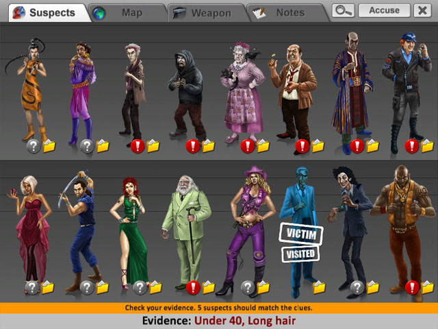The Superintendent of Interpol needs your help! It’s up to you to track 16 criminals across the globe to learn the criminal’s MO. Scour each scene for evidence, and decipher the clues awarded at the end of each site to build your investigation. With more than 4,000 different outcomes, there’s always a case to crack in Unlikely Suspects! - Unlikely Suspects