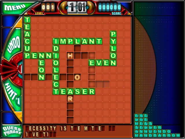 This entertaining word game offers a fun way to play with crosswords. Use your logic and quick thinking to place words on the board. When you're right, letters will be revealed to show you the beginnings of a secret phrase. End the level by filling the board, or finishing the phrase on your own. Never-ending fun! - Word Cross