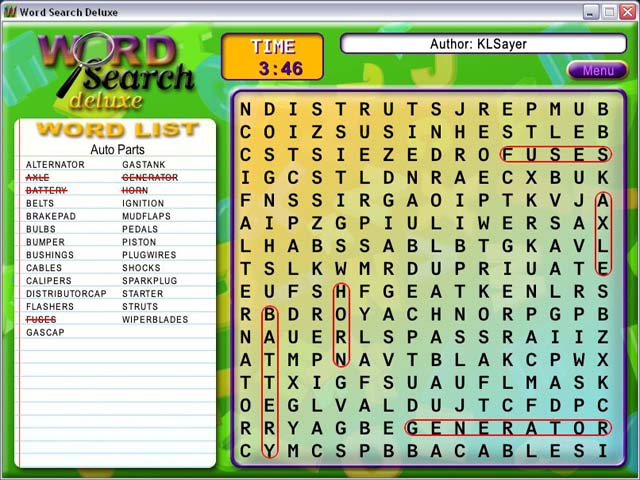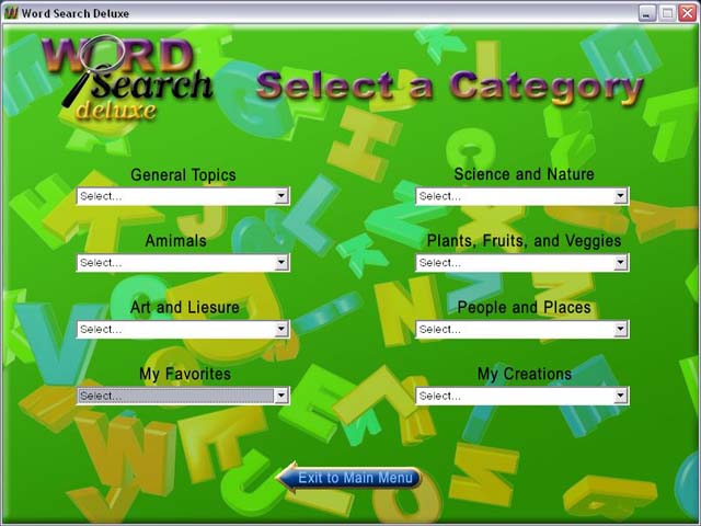 This family-friendly game features thousands of word groups, numerous game types, a puzzle editor, and difficulty settings for all ages and skill levels. A kids' option with animated and easy-to-read, large grids of letters helps aid the learning process. Want to create your own puzzle? Use the puzzle editor. Your search for the perfect word game ends here! - Word Search Deluxe