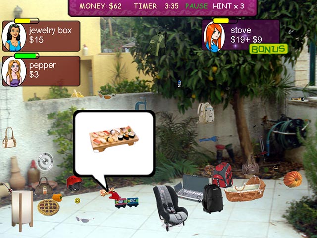 Shirley dreams of being a boutique owner in Beverly Hills, but first she needs some cold hard cash. Organize high end yard sales in the backyards of Malibu, Venice Beach, and Hollywood selling items to impatient customers. Cater to their every whim and be on the lookout for those willing to shell out bonuses. Yard Sale Junkie is a one-of-a-kind hunt for hidden objects where you must expertly manage your minutes. - Yard Sale Junkie