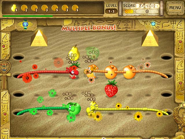 Not only are these Yumsters crazy for strawberries, they can rock the bongos. For the love of fruity music, help them earn money by cleaning gardens to promote their band. To really skyrocket, Yumsters need the best equipment to win the ultimate grand prize at the fairy town music showdown. Get fruitilicious in five vibrant locations of Yumsters 2, a sweet Match 3 puzzler. - Yumsters! 2