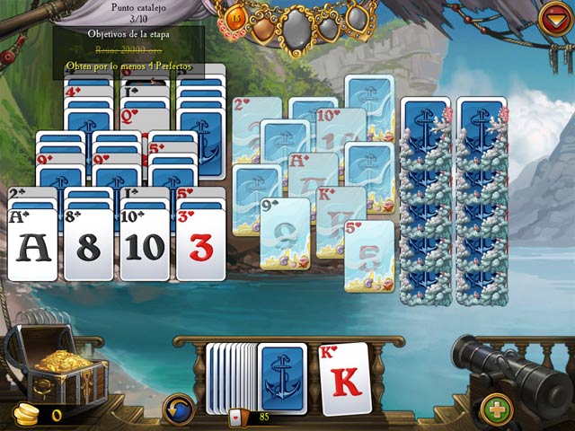 Poco después de regresar de tu última misión como oficial naval, tu futura esposa desaparece, y ¡ te culpan de su secuestro! Recorre los siete mares para encontrar al culpable y traerla de vuelta a casa. Combina cartas y dispara cañones para avanzar de nivel. Recoge pistas y obtén herramientas que te ayudarán a recuperar a tu querida Elaine. ¿Tienes la audacia necesaria para conquistar los peligros del mar y convertirte en capitán legendario? - Seven Seas Solitaire