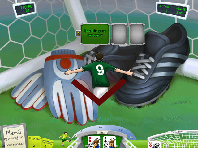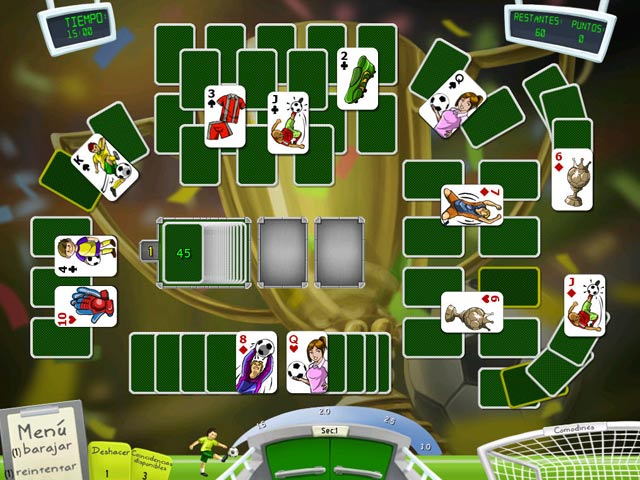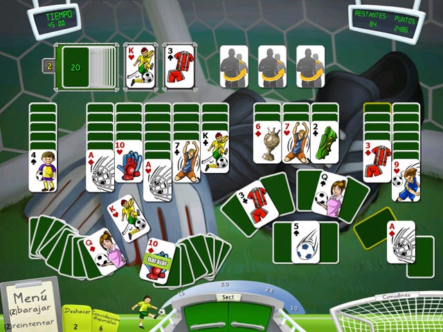 Consigue la victoria en este juego donde el deporte más famoso del mundo se combina con el pasatiempo favorito de todo el mundo. Logra emparejar los naipes para obtener puntos suficientes y anotar un gol. ¡Prepárate para enfrentarte a equipos como Brasil, Inglaterra, España, Estados Unidos y pelea por la victoria! - Soccer Cup Solitaire