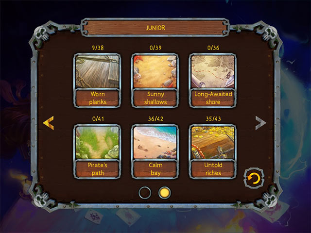 Faites des paires de cartes et profitez d'une ambiance de piraterie. Découvrez toutes les cartes jaunes pour gagner un maximum de pièces. Celles-ci vous permettent d'investir dans la boutique et d'avancer dans les niveaux. Êtes-vous prêt pour l'abordage moussaillon ? - Solitaire Pirate 3