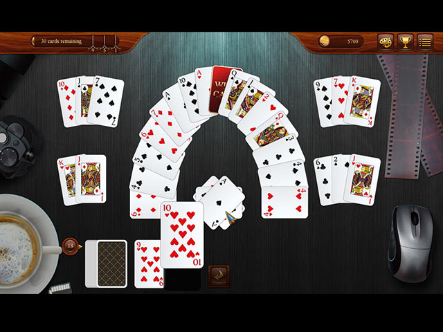 Avec le jeu Solitaire Club, vous pouvez jouer pendant des heures sur plus de 80 plateaux à difficulté variable ! Décrochez de nombreux trophées en collectant le plus de cartes d’affilée, en gagnant des étoiles ou encore en laissant au moins 15 cartes dans la pioche en fin de partie ! Personnalisez aussi votre fond d’écran en achetant de nouveaux décors grâce aux pièces remportées. - Solitaire Club