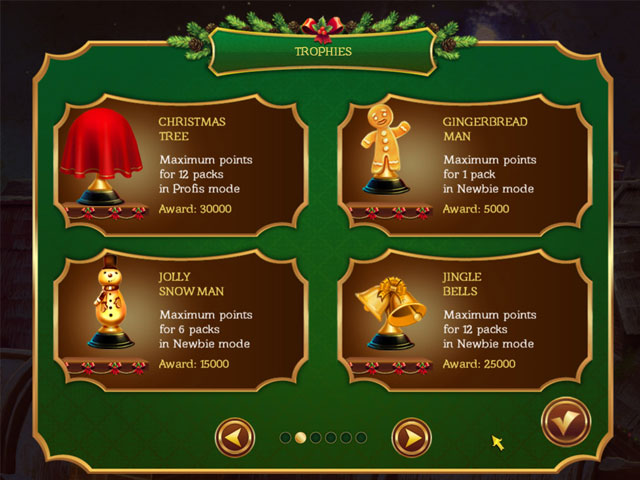 Si vous aimez le solitaire, ce jeu est fait pour vous ! Chaque niveau a son propre décor et tous ont une ambiance chaleureuse. La musique alterne entre nostalgie et gaieté ce qui permet un bon moment de détente. Terminez chaque niveau avec les points requis afin de débloquer le prochain. Profitez du bonus mélangeur ou du Joker lorsque cela devient un peu plus corsé. - Solitaire Noël