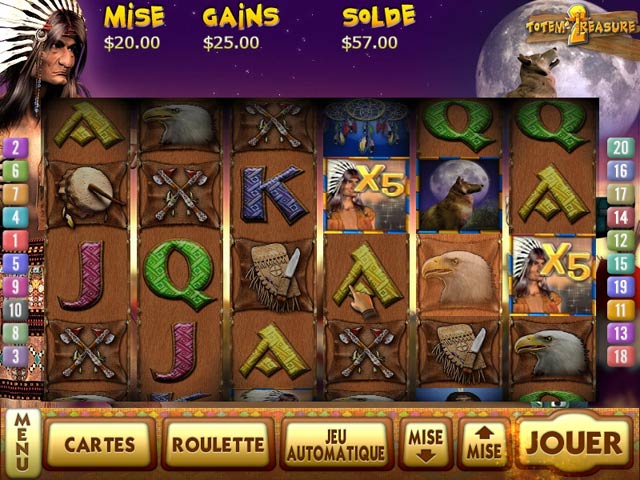 Les bonus du totem abondent et les animaux mystiques vous apportent le plus grand trésor qui soit : le Jackpot Wampum ! Gardez l'œil ouvert, la carte du grand chef peut vous aider à gagner beaucoup plus. Relaxez-vous et laissez-le remplir toutes les positions sur les rouleaux. Vous nagerez vraiment dans l'argent ! - Totem Treasure 2