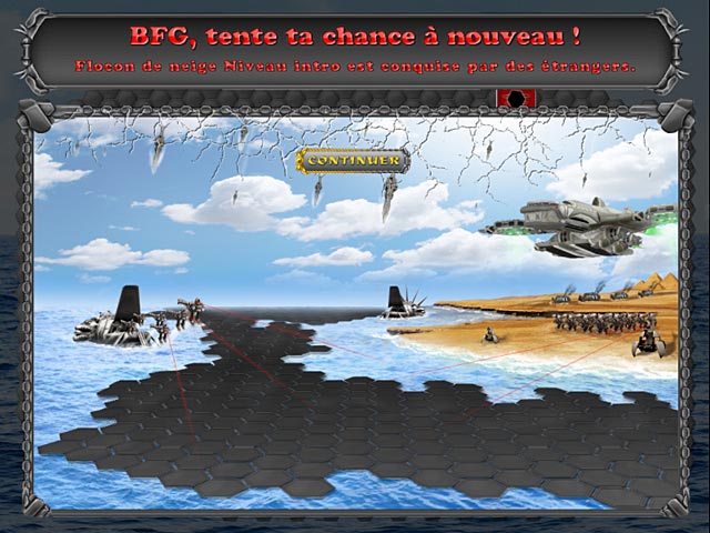 Détruisez les panneaux solaires que des envahisseurs utilisent comme source d'énergie. Libérez chaque champ de bataille aussi vite que vous pouvez pour vaincre votre ennemi, et avancer plus loin encore dans votre aventure. Choisissez vos mouvements soigneusement dans ce jeu de puzzle étonnant et remportez le trophée principal ! - Tuber contre les étrangers