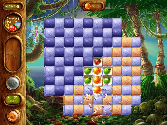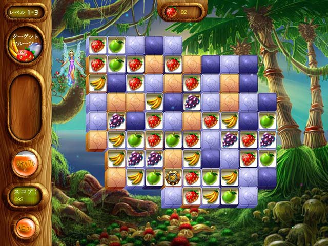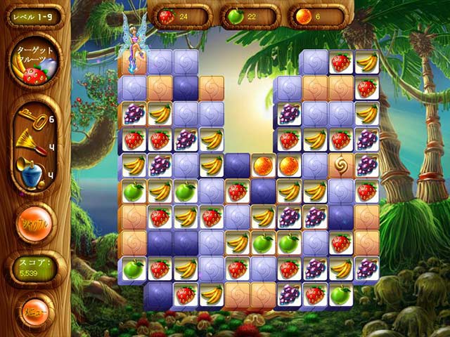PC ダウンロードゲーム:マッチ 3 ゲーム 英語版タイトル:Alice and the Magic Gardens 今すぐ「アリスと魔法の庭園」をプレイ! まずは無料体験版をダウンロードしよう。 悪い魔女の呪いによって失われてしまった果物を見つけるために、妖精たちがお城に仕える召使のアリスに助けを求めました。美味しい果物を見つけて妖精の世界を救ってくれたお礼には、妖精たちがアリスに素敵な庭園を用意してくれるそうです!マッチ 3 をプレイして、タイルに隠された果物をどんどん見つけていきましょう!果物を見つけるたびにポイントが獲得でき、次のレベルに進むことができます。ハンマーやフルーツブラスターといったお助けアイテムを使うとより多くの果物を一度に見つけることができますよ!アリスと一緒にたくさんの果物を見つけて悪い魔女の呪いから妖精たちを救いましょう! - アリスと魔法の庭園