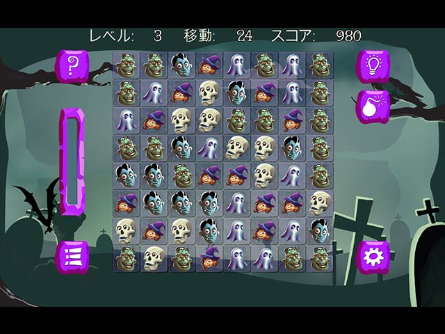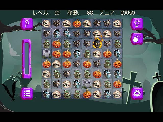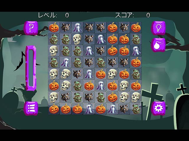英語版タイトル:Bubble Double Halloween ゾンビや魔女、おばけカボチャなどの不気味で可愛いハロウィンキャラクターが登場!同じキャラクター 2 つ以上をマッチして次のステージを目指そう!マッチする数が多ければ多いほど獲得するスコアもアップ!スコアモード、移動モードの 2 つのゲームモードがあり初心者から上級者まで楽しめるマッチ 3 ゲーム。可愛いキャラクターとハロウィン風の音楽で気分も上がるはず! - バブルダブル