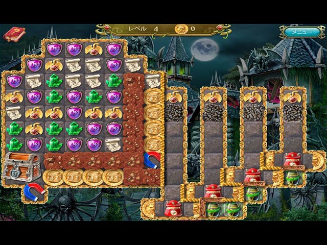 英語版タイトル:Cursed House 5 美しいお屋敷を再び邪悪な精霊が荒らしています!精霊を倒すことのできるアミュレットはそのパワーを失い、再びチャージする必要があります。屋敷中に散らばったコインを集めてアミュレットのパワーを取り戻しましょう!ますます美しく、楽しさもパワーアップしたマッチ 3 パズルに挑戦し、邪悪な精霊を倒してお屋敷のかつての栄光を取り戻すのを手伝ってください! - 呪われた家 5