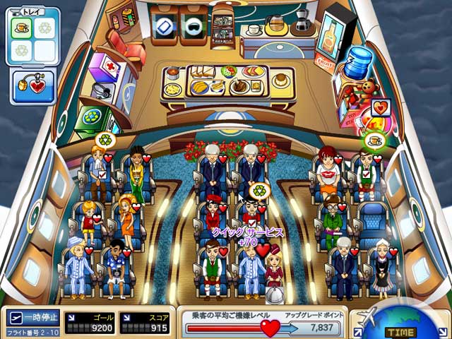 不況が続くこの時期、客室乗務員としてクレアが勤めてきたスターリンク航空もとうとう倒産が決まってしまった。しかし「捨てる神あれば拾う神あり」、空港会社の新しいオーナーがクレアの才能を認めて再び雇ってくれることに。ゼロから始めることとなった新しい会社が再び成功できるかは、クレアの頑張り次第!搭乗したお客さまのお世話をうまくこなして、もう一度スターアテンダントの座につけるかな?飛行機の中のワクワク感まで楽しめちゃうタイムマネージメントゲームで、気軽に空の旅をエンジョイしよう! - ファーストクラス・フルーリー