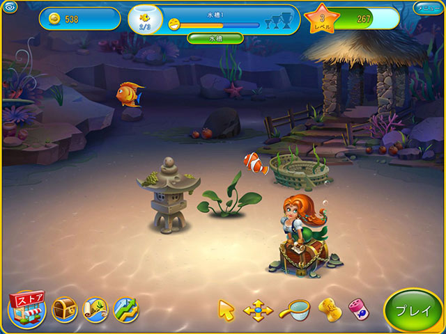 PC ダウンロードゲーム:マッチ 3 ゲーム 英語版タイトル:Fishdom 3 今すぐ「フィッシュダム 3」をプレイ! まずは無料体験版をダウンロードしよう。 新しい「フィッシュダム 3」で最高のお魚王国を作ろう!今回のフィッシュダムでは全てのお魚が 3D になって再登場!爽快なマッチ 3 ゲームを遊んでトロフィーや賞金を獲得しながらお金を稼ぎ、色鮮やかな魚たちや魅力的なアクセサリーを購入して水槽をデコレーションしよう!150 種類以上の装飾品や植物アイテムと 8 つのユニークな背景テーマを使ってあなただけの水中王国が出来上がったら、魚たちと一緒に会話を楽しんだり遊んだりしよう!「フィッシュダム 3」であなただけの夢のアクアリウムを作ることができるかな? - フィッシュダム 3