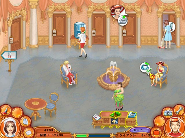 その昔、ジェーンの家族が経営していたという有名なホテルチェーンが、現在売りに出されているという事実を知ったジェーン。銀行から借りた買取資金を返済するためにも今度は国境を越えてエキゾチックなホテルを経営しよう!客室係とボーイの作業も増えて、アップグレードもさらに豪華なラインナップで登場。果たしてファミリービジネスを復活させることはできるかな? - ジェーンズホテル: ファミリーヒーロー