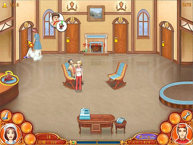 家族が経営していたホテルチェーンを大きくしたジェーン。次の挑戦は姪のジェニーと一緒に世界の 4 つの場所でのホテル経営!スコットランド、エジプト、ロシア、モナコ、世界をまたにかけてお客さんの快適な日々を演出しよう。ボリューム満点の 40 レベル。まずはスコットランドの邸宅からスタート!大人気のジェーンズホテルシリーズ第三弾! - ジェーンズホテル: ワールドツアー