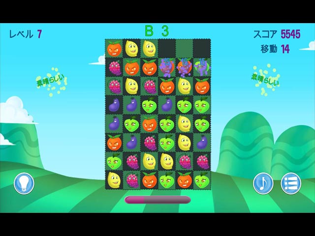 英語版タイトル:Jewel Adventures シンプルなパズルでマッチ 3 のウデを試そう!かわいらしい果物たちをマッチさせてレベルをクリアしていこう!スコアにだけ集中してプレイできるスコアモードと移動数が制限されている移動モードをご用意!最長コンボを見つけてレベルを一気にクリアできるかな? - ジュエル・アドベンチャーズ