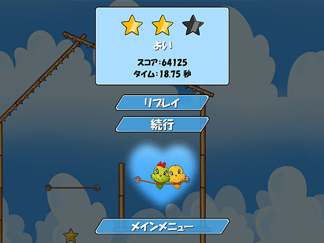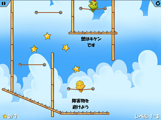 PC ダウンロードゲーム:アーケード & アクション ゲーム 英語版タイトル:Jump Birdy Jump 今すぐ「ジャンプ バーディ ジャンプ!」をプレイ! まずは無料体験版をダウンロードしよう。 愛し合う 2 羽の鳥たちがあなたの助けを待っています。ロープをスリングショットのように使い、障害物を避けて真実の愛に向かってジャ~ンプ!星をできる限り集めて新しいレベルを解除し、全レベルを制覇しよう!各レベルにある秘密の星を見つけることも忘れずにね。時間が経つのを忘れてしまうくらい夢中になっちゃう、アーケード & アクション ゲーム!無料体験版で「ジャンプ バーディ ジャンプ!」をプレイするか完全版をダウンロードして愛の行方を見届けよう! - ジャンプ・バーディ・ジャンプ!