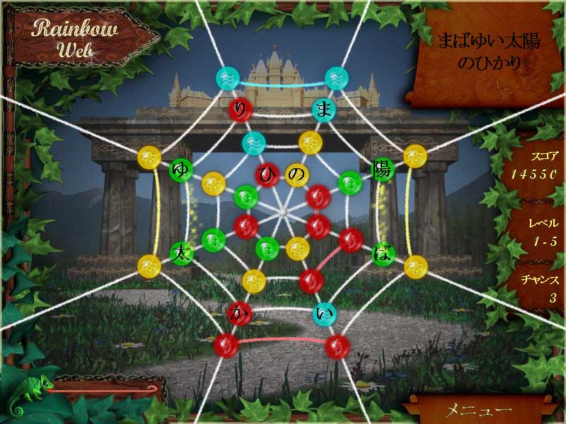 クモの巣に散乱するビーズ、このパズルを解けば呪いも解けます。同じ色のビーズをいかに 3 つ以上並べるかのスキル上達を中心に展開するパズルゲーム。さあ、虹の王国にかけられた呪いは解けるか! - レインボー ウェブ