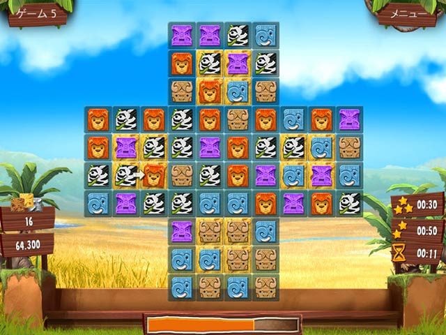 サファリ ベンチャー:- 105 の手ごたえあるマッチ 3 ステージ