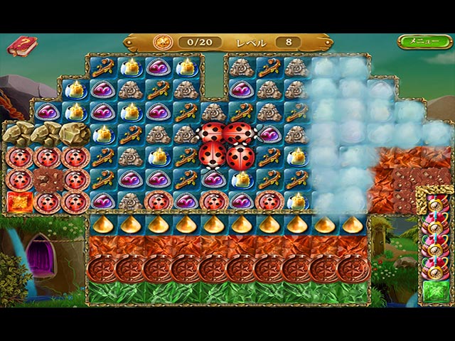 英語版タイトル:Spellarium 2 この世は炎、風、大地、水、暗闇、光の六つのエレメントから成り立っている。ところが神々が第七のエレメントが存在することを明らかにしたというのだ!君の使命は魔法使いエリックに協力しながらエレメントの神殿を築き、第七のエレメントを作り出すこと。マッチ 3、 アイテム探し、ソリティアに挑戦しながら神殿完成を目指そう。効率性“命”のエリックが発する辛口なコメントにも要注目! - スペラリウム 2