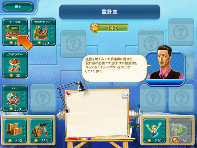 叔父の遺産であるリゾートホテルチェーンの経営を引き継ぐことになったキミ。限られた建築資材や作業員、収支決済に気を配りながら土地や建物の売買、宿泊施設やボートレンタル等のレジャー施設、バーなどの商業施設を建ててリゾートビジネスを体験しよう!忙しいほどクセになる人気の経営ゲーム! - バカンス エンパイヤー