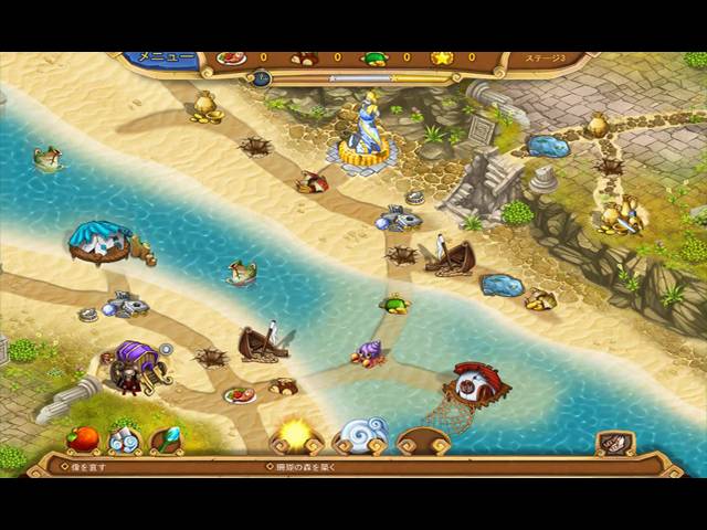 英語版タイトル:Weather Lord: Legendary Hero! Collector's Edition 休暇を取るためビクター王とオリヴィア姫は美しい浜辺があると有名な南国の島へ旅立った。ところが着いた先はがれきだらけの浜辺や手入れのされていない海岸。せっかくのバカンスがこのままでは台無しになってしまう…そこでビクター達は廃墟やモニュメントを修復しながら観光することに。二人は古い神殿や像を修復していき、ひとつの古い魔法の門にたどりついた。がれきの中から門の破片をかき集め修復すると突然オリヴィアが取り込まれてしまったではないか!消えたオリヴィアは一体どこに?誰が何の目的で二人を狙うのか?オリヴィアを助けるには島の神殿から神々を復活させて協力してもらうしかない!ビクターと共にオリヴィアを救出せよ! - おてんとさま:伝説の勇者 コレクターズ・エディション